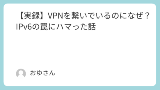 システムエンジニアの出来事 【実録】VPNを繋いでいるのになぜ?IPv6の罠にハマった話 「VPNを繋いでいるから、IP制限のあるサイトも大丈夫」そう思っていた時期が私にもありました。長年システムエンジニアをしていますが、先日、基本中の基本で見事にハマってしまったので、恥を忍んで共有します。発生したトラブル仕事で管理している、A... 2026.01.13 システムエンジニアの出来事日々の出来事