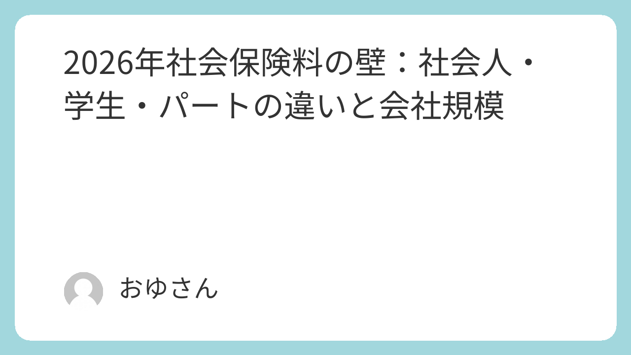 今回は、2026年からさらに注目度が増す社会保険料の壁について、社会人、学生、パートの方々それぞれのケースで、収入がいくらから社会保険料が発生するのか、そして会社規模による違いや、交通費の扱いについても、分かりやすく解説していきたいと思います。